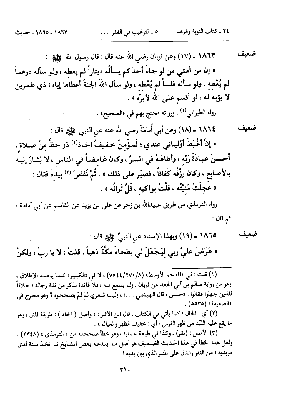 1863 - (17) [ضعيف] وعن ثوبان رضي الله عنه قال: قال رسول الله - صلى الله عليه وسلم -: