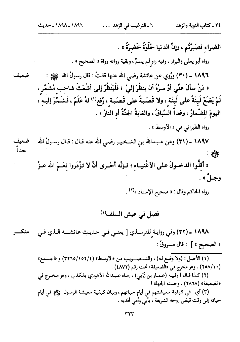 1896 - (30) [ضعيف] ورُوي عن عائشة رضي الله عنها قالتْ: قال رسولُ الله - صلى الله عليه وسلم: