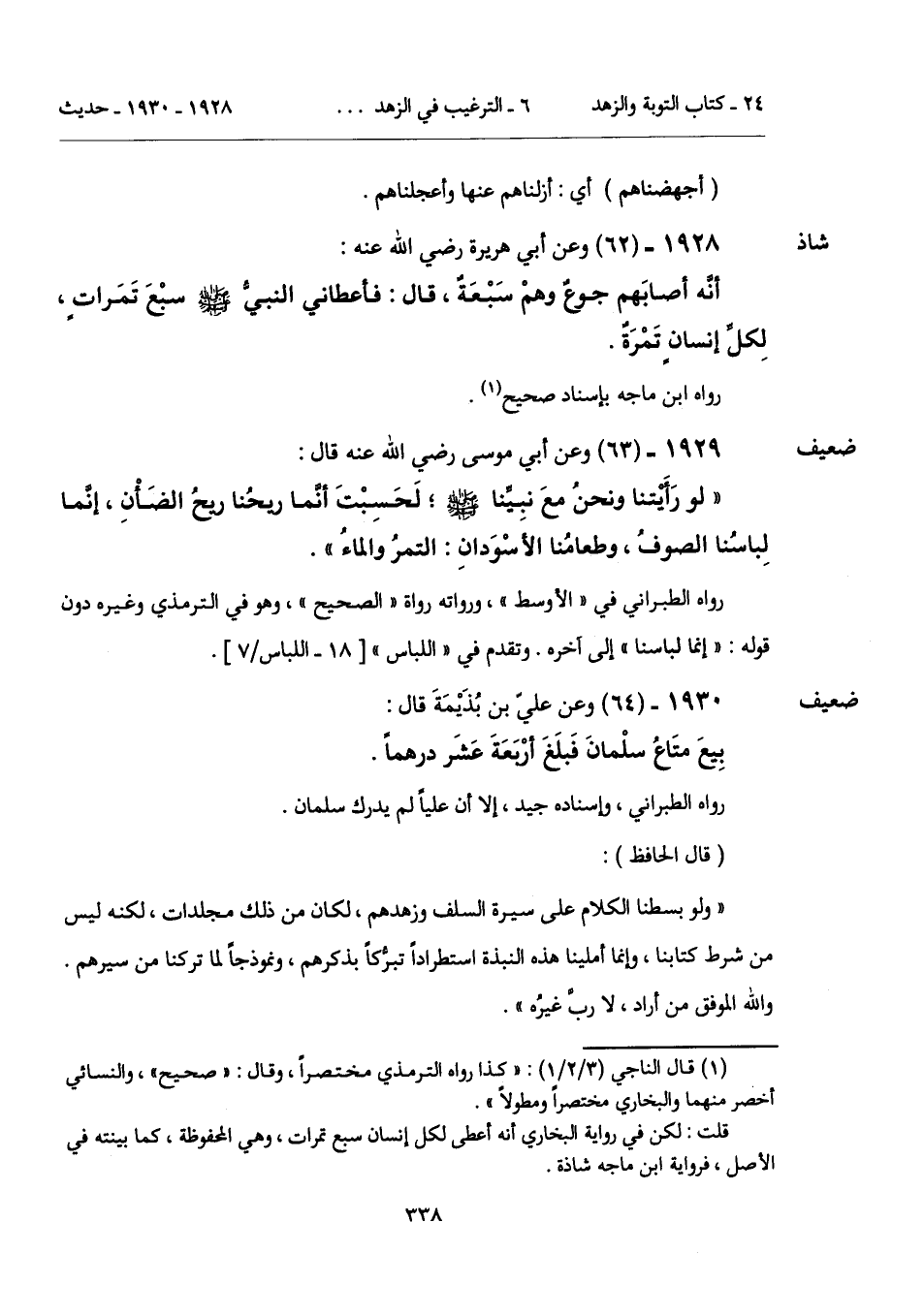 "ولو بسطنا الكلام على سيرة السلف وزهدهم، لكان من ذلك مجلدات، لكنه ليس من شرط كتابنا، وإنما أملينا هذه النبذة استطراداً تبرُّكاً بذكرهم، ونموذجاً لما تركنا من سيرهم. والله الموفق من أراد، لا ربِّ غيرُه".
