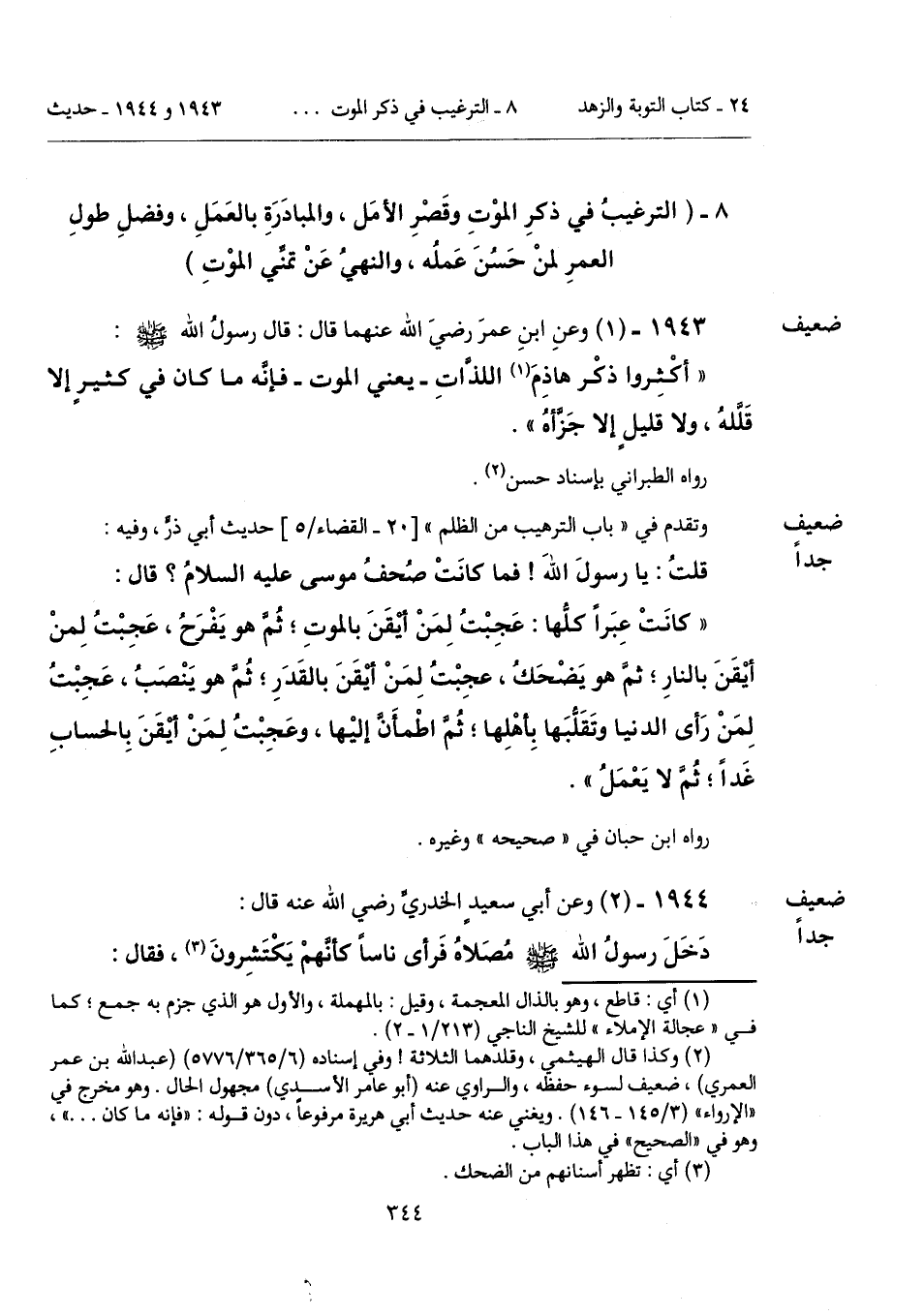 8 - (الترغيبُ في ذكرِ الموْتِ وقَصْرِ الأمَل، والمبادَرَةِ بالعَمَلِ، وفضلِ طولِ العمرِ لمنْ حَسُنَ عَملُه، والنهيُ عَنْ تمنِّي الموْتِ).