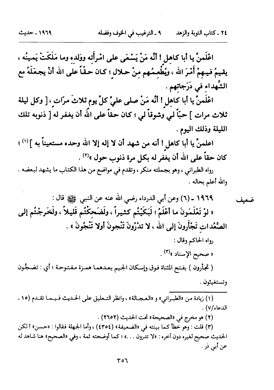 1969 - (6) [ضعيف] وعن أبي الدرداء رضي الله عنه عن النبي - صلى الله عليه وسلم - قال: