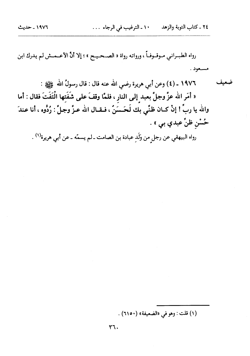 1976 - (4) [ضعيف] وعن أبي هريرة رضي الله عنه قال: قال رسولُ الله - صلى الله عليه وسلم -:
