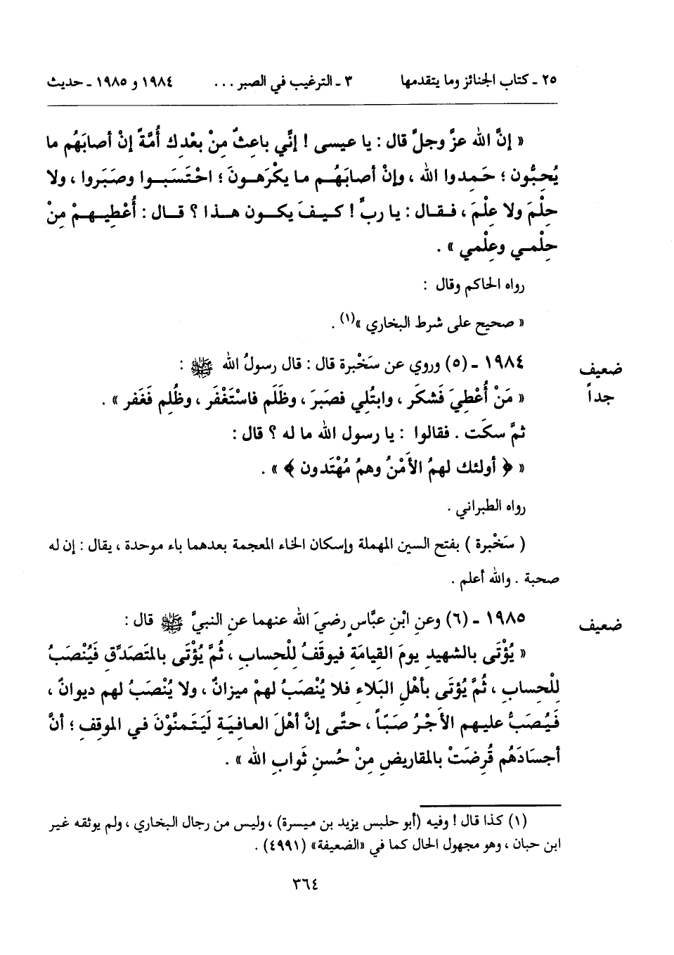1984 - (5) [ضعيف جداً] وروي عن سَخْبرة قال: قال رسولُ الله - صلى الله عليه وسلم -: