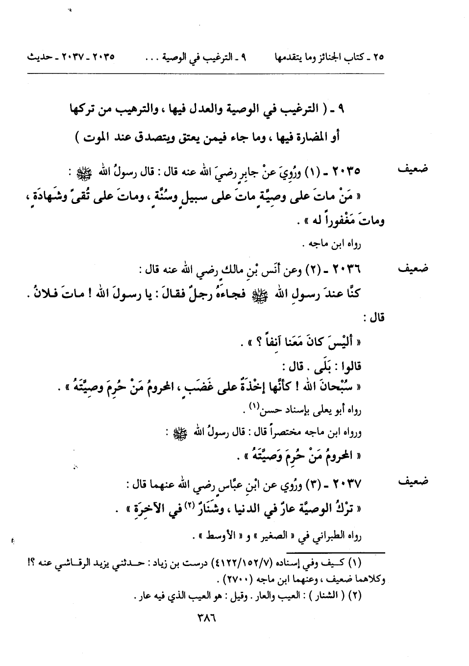 9 - (الترغيب في الوصية والعدل فيها، والترهيب من تركها أو المضارة فيها، وما جاء فيمن يعتق ويتصدق عند الموت).