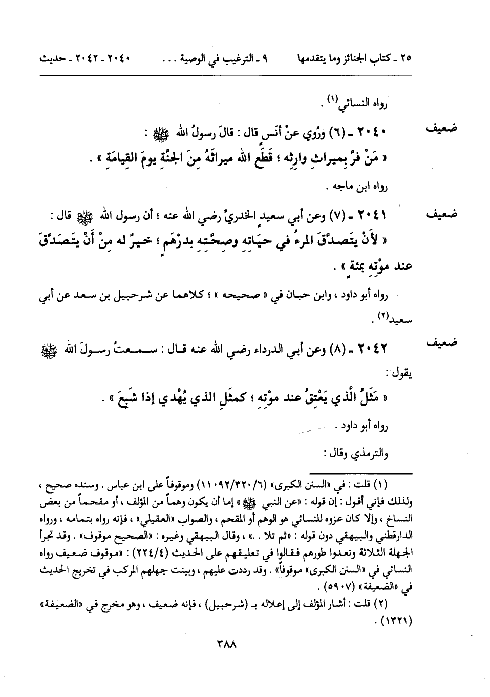 2040 - (6) [ضعيف] ورُوي عنْ أنَسٍ قال: قالَ رسولُ الله - صلى الله عليه وسلم -: