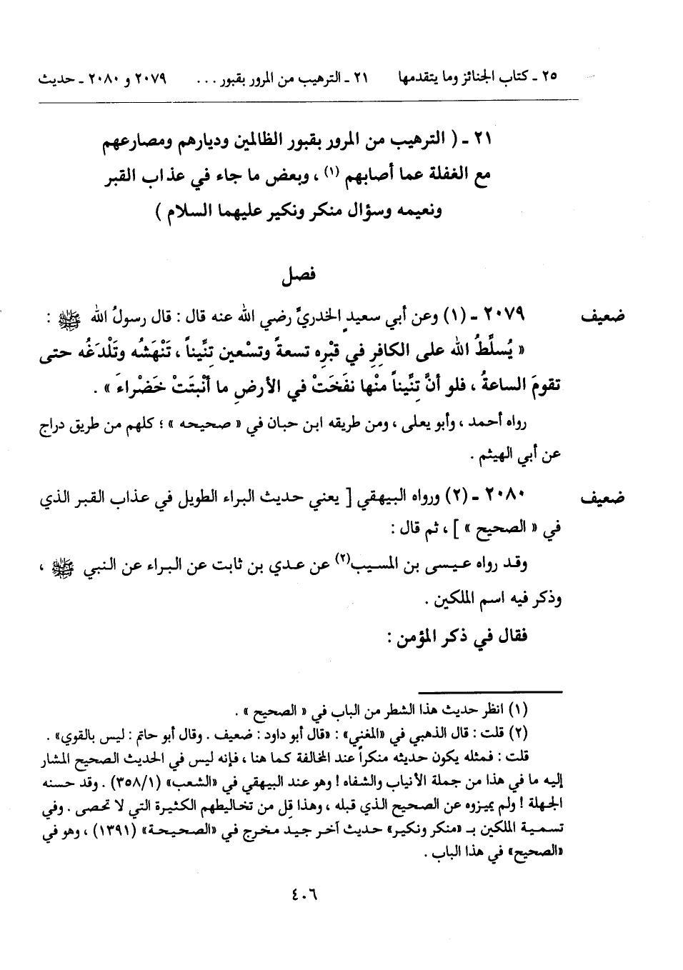 2080 - (2) [ضعيف] ورواه البيهقي [يعني حديث البراء الطويل في عذاب القبر الذي في "الصحيح"]، ثم قال: