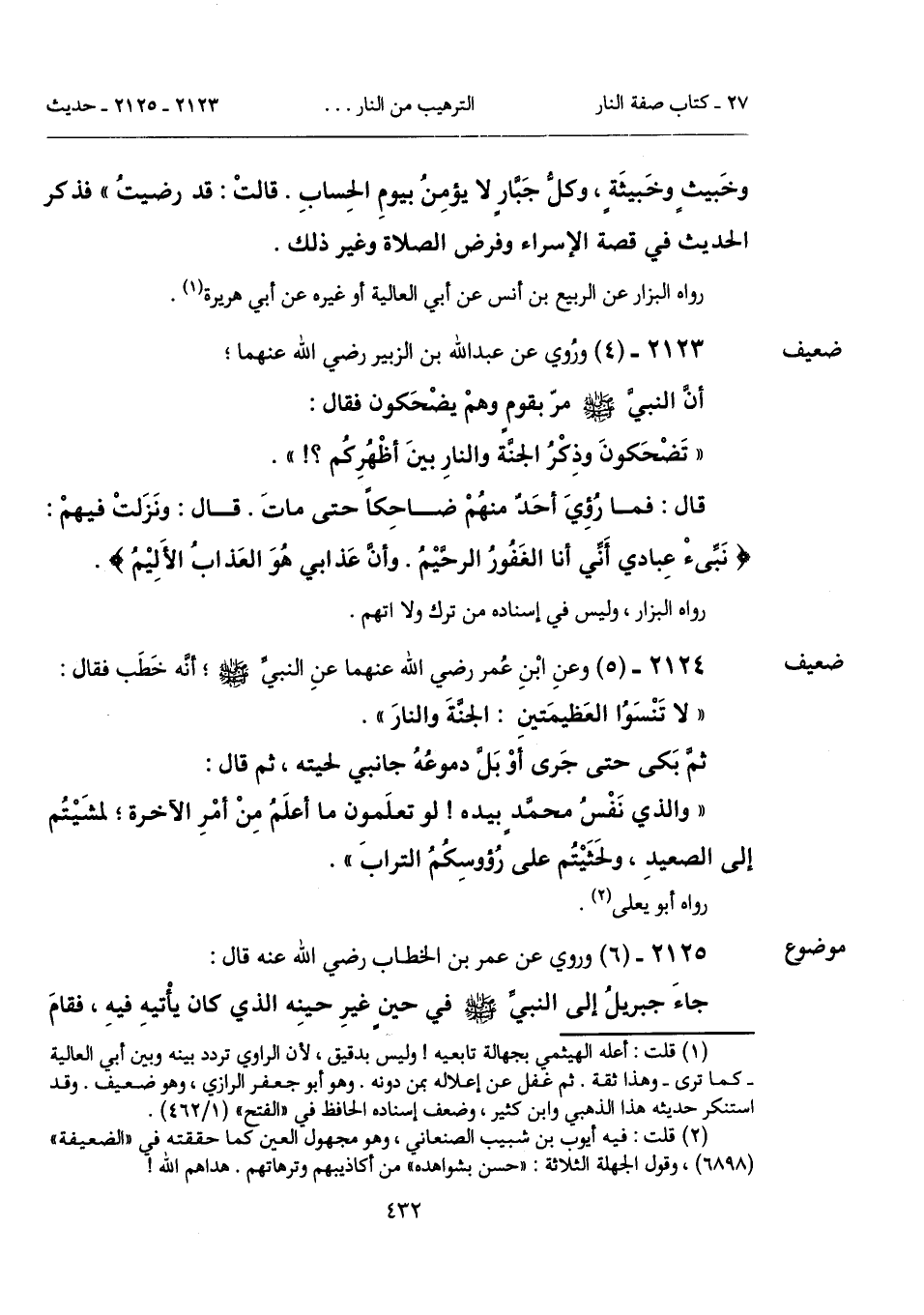 2123 - (4) [ضعيف] ورُوي عن عبد الله بن الزبير رضي الله عنهما؛ أنَّ النبيَّ - صلى الله عليه وسلم - مرّ بقومٍ وهمْ يضْحَكون فقال: