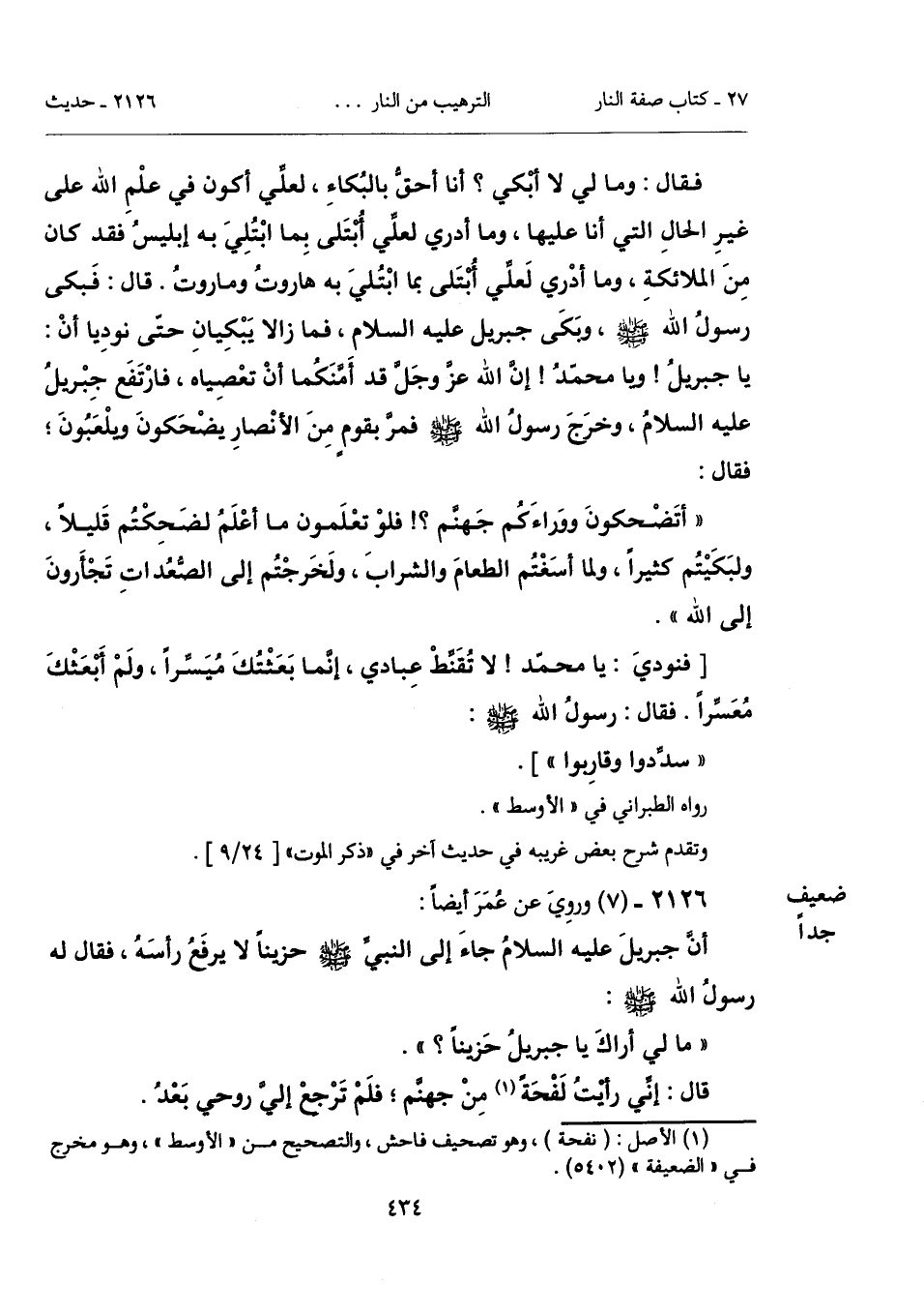 "أتَضْحكونَ ووَراءَكُم جَهنَّم؟! فلوْ تعْلَمون ما أعْلَمُ لضَحِكْتُم قَليلاً، ولبَكَيْتُم كثيراً، ولما أسَغْتُم الطعامَ والشرابَ، ولَخَرجْتُم إلى الصُّعُداتِ تَجْأرونَ إلى الله".