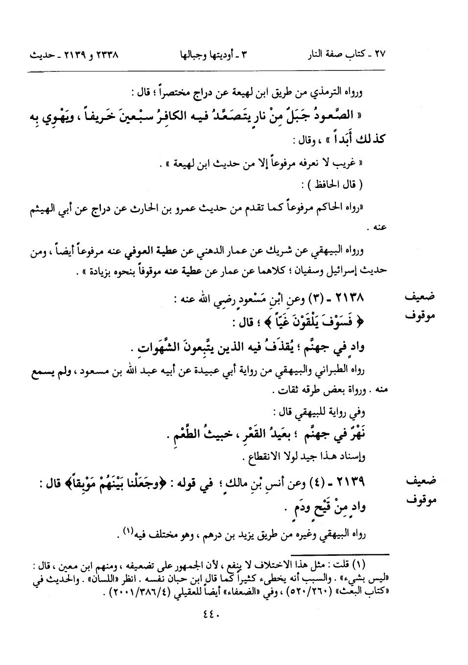 2139 - (4) [ضعيف موقوف] وعن أنسِ بْنِ مالكٍ؛ في قوله: {وَجَعَلْنَا بَيْنَهُمْ مَوْبِقًا} قال: