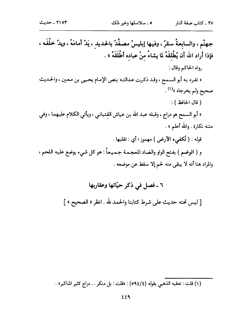 "أبو السمح هو دراج، وقبله عبد الله بن عياش القِتباني، ويأتي الكلام عليهما، وفي متنه نكارة. والله أعلم".