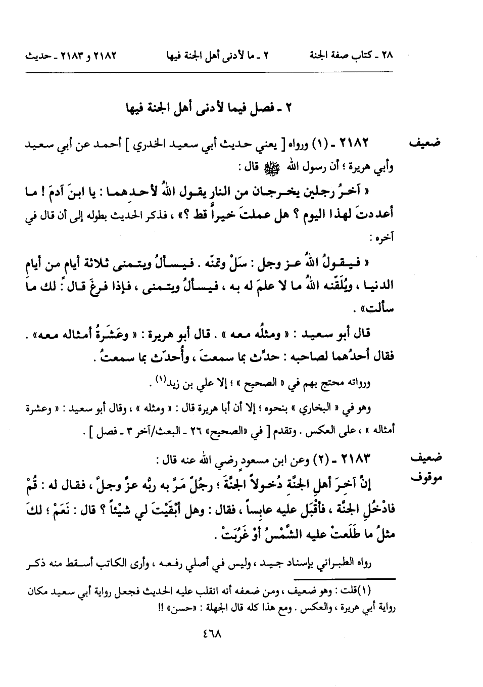 2 - فصل فيما لأدنى أهل الجنة فيها.