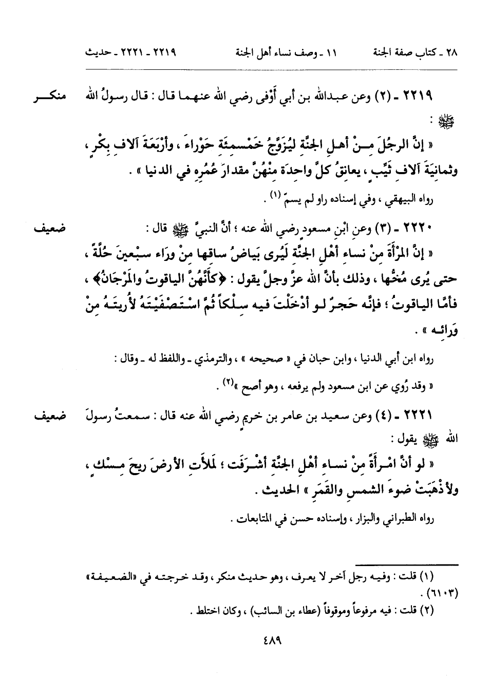 2219 - (2) [منكر] وعن عبد الله بن أبي أَوْفى رضي الله عنهما قال: قال رسولُ الله - صلى الله عليه وسلم -: