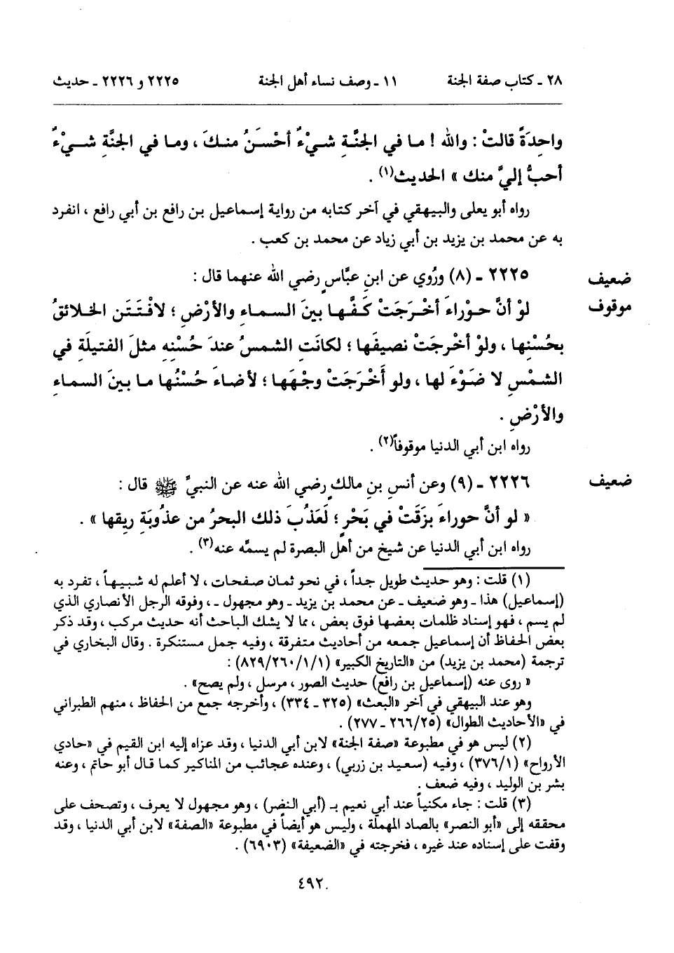 (¬2) ليس هو في مطبوعة "صفة الجنة" لابن أبي الدنيا، وقد عزاه إليه ابن القيم في "حادي الأرواح" (1/ 376)، وفيه (سعيد بن زربي)، وعنده عجائب من المناكير كما قال أبو حاتم، وعنه بشر بن الوليد، وفيه ضعف.
