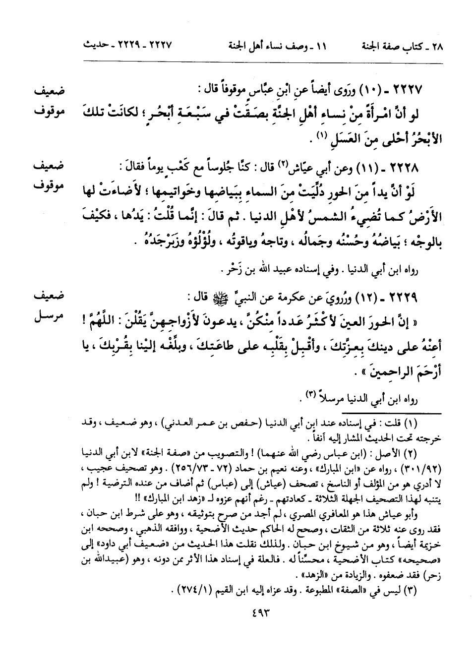(¬2) الأصل: (ابن عباس رضي الله عنهما)! والتصويب من "صفة الجنة" لابن أبي الدنيا (92/ 301)، رواه عن "ابن المبارك"، وعنه نعيم بن حماد (72 - 73/ 256). وهو تصحيف عجيب، لا أدري هو من المؤلف أو الناسخ، تصحف (عياش) إلى (عباس) ثم أضاف من عنده الترضية! ولم يتنبه لهذا التصحيف الجهلة الثلاثة -كعادتهم- رغم أنهم عزوه لـ "زهد ابن المبارك"!!