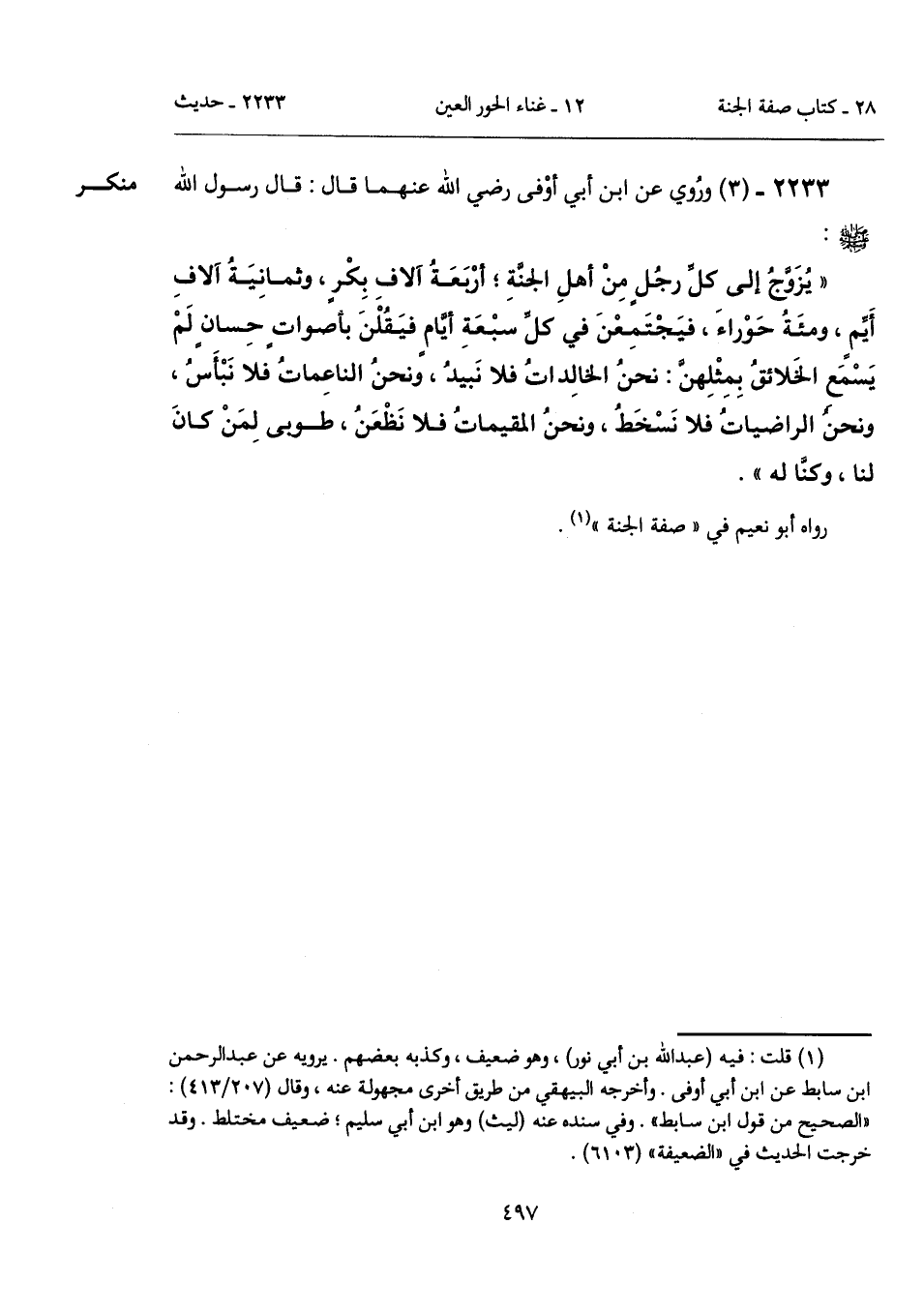 2233 - (3) [منكر] ورُوي عن ابن أبي أوْفى رضي الله عنهما قال: قال رسول الله - صلى الله عليه وسلم -: