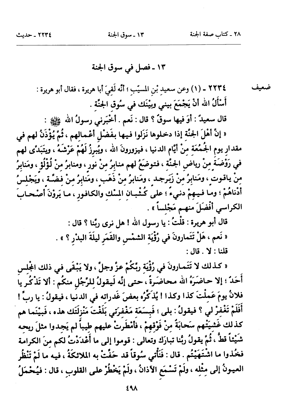 2234 - (1) [ضعيف] وعن سعيدِ بْنِ المسيّبِ؛ أنَّه لَقِيَ أبا هريرة، فقال أبو هريرة: