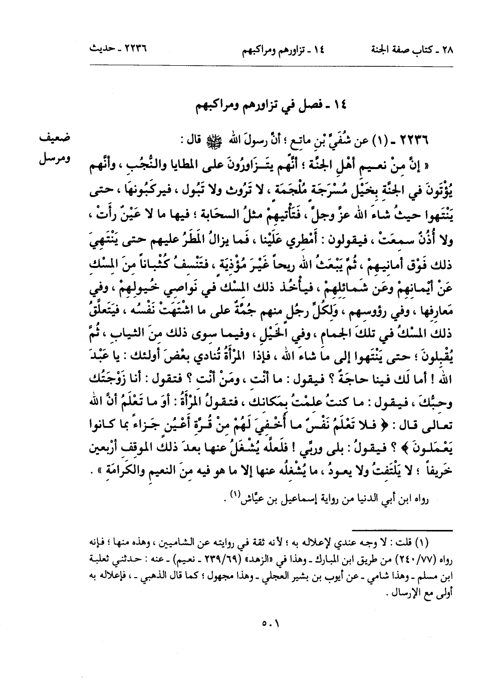 (¬1) قلت: لا وجه عندي لإعلاله به؛ لأنه ثقة في روايته عن الشاميين، وهذه منها؛ فإنه رواه (77/ 240) من طريق ابن المبارك -وهذا في "الزهد" (69/ 239 - نعيم) - عنه: حدثني ثعلبة ابن مسلم -وهذا شامي- عن أيوب بن بشير العجلي -وهذا مجهول؛ كما قال الذهبي-، فإعلاله به أولى مع الإرسال.