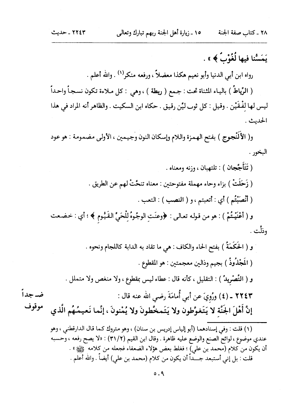 2243 - (4) [ضعيف جداً موقوف] ورُوِيَ عن أبي أُمامَةَ رضي الله عنه قال: