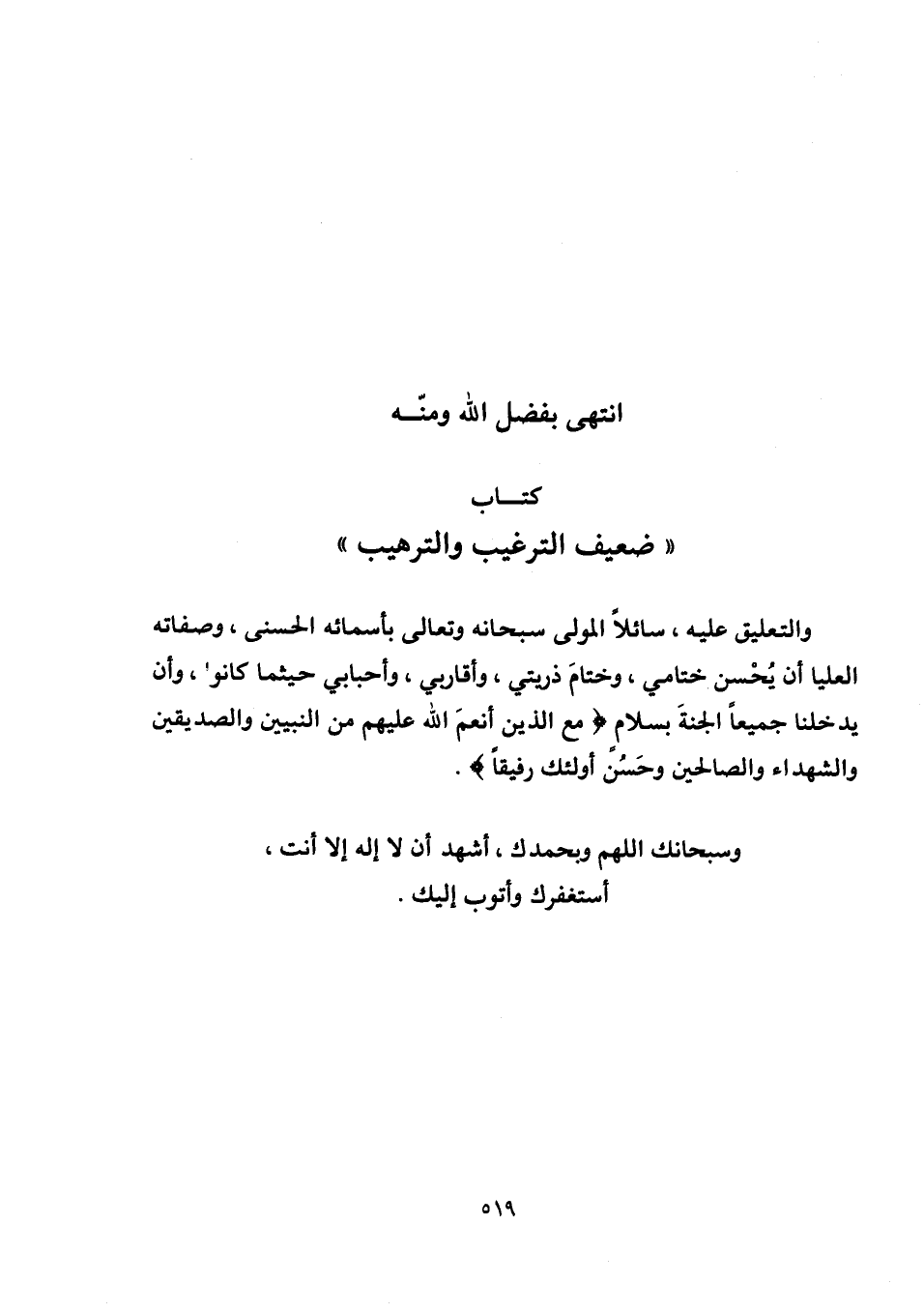 والتعليق عليه، سائلاً المولى سبحانه وتعالى بأسمائه الحسنى، وصفاته العليا أن يُحْسن ختامي، وختامَ ذريتي، وأقاربي، وأحبابي حيثما كانوا، وأن يدخلنا جميعاً الجنةَ بسلامٍ {مَعَ الَّذِينَ أَنْعَمَ اللَّهُ عَلَيْهِمْ مِنَ النَّبِيِّينَ وَالصِّدِّيقِينَ وَالشُّهَدَاءِ وَالصَّالِحِينَ وَحَسُنَ أُولَئِكَ رَفِيقًا}.