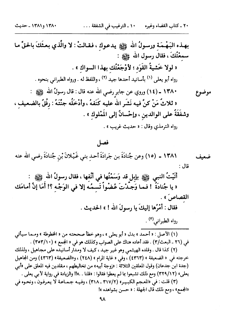 1381 - (15) [ضعيف] وعن جُنادَةَ بن جَرادَةَ أحدِ بني غَيْلانَ بْنِ جُنادَةَ رضي الله عنه قال: