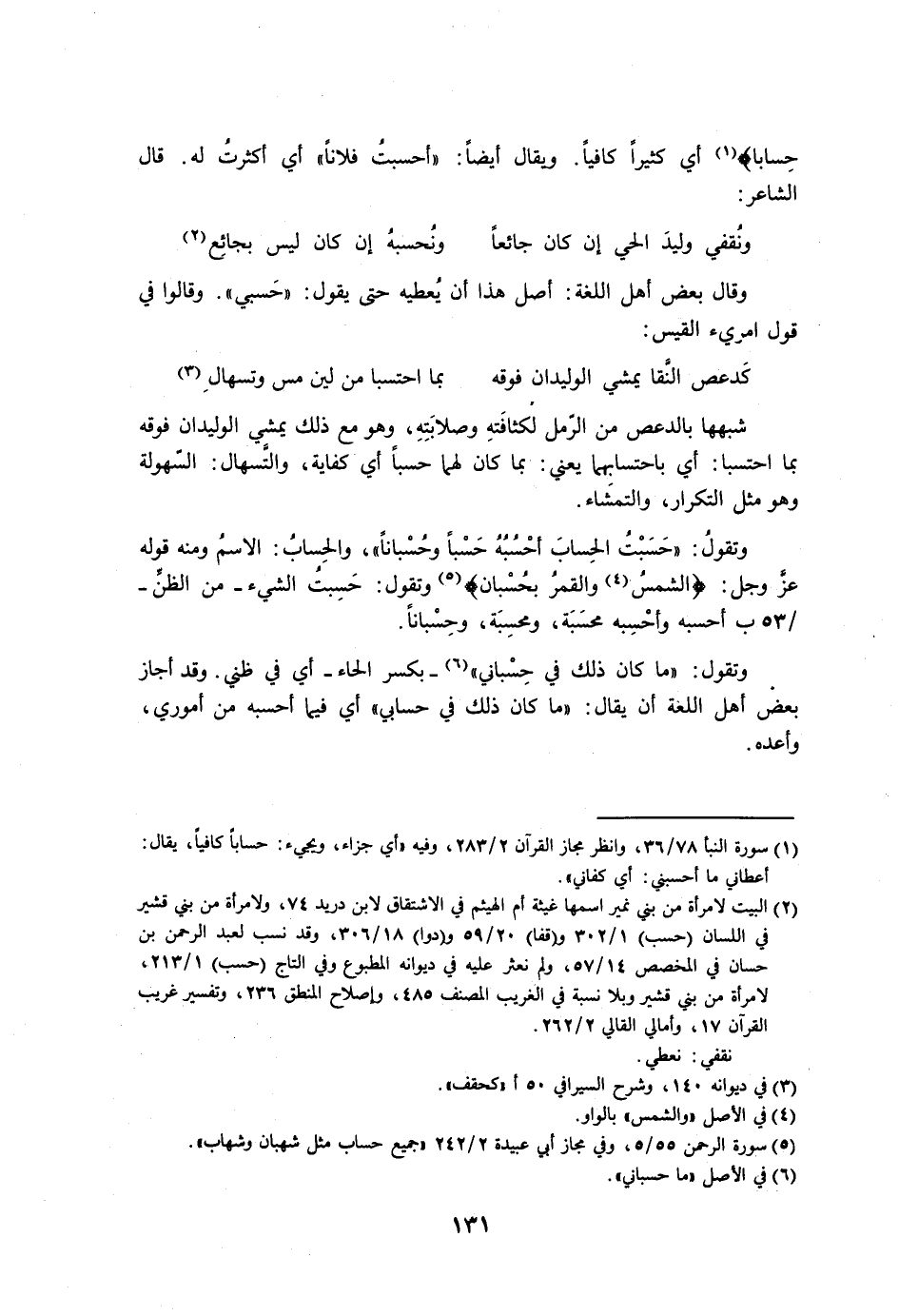 حسابا} أي كثيرًا كافيًا. ويقال أيضًا: «أحسبت فلانًا» أي أكثرت له. قال الشاعر: