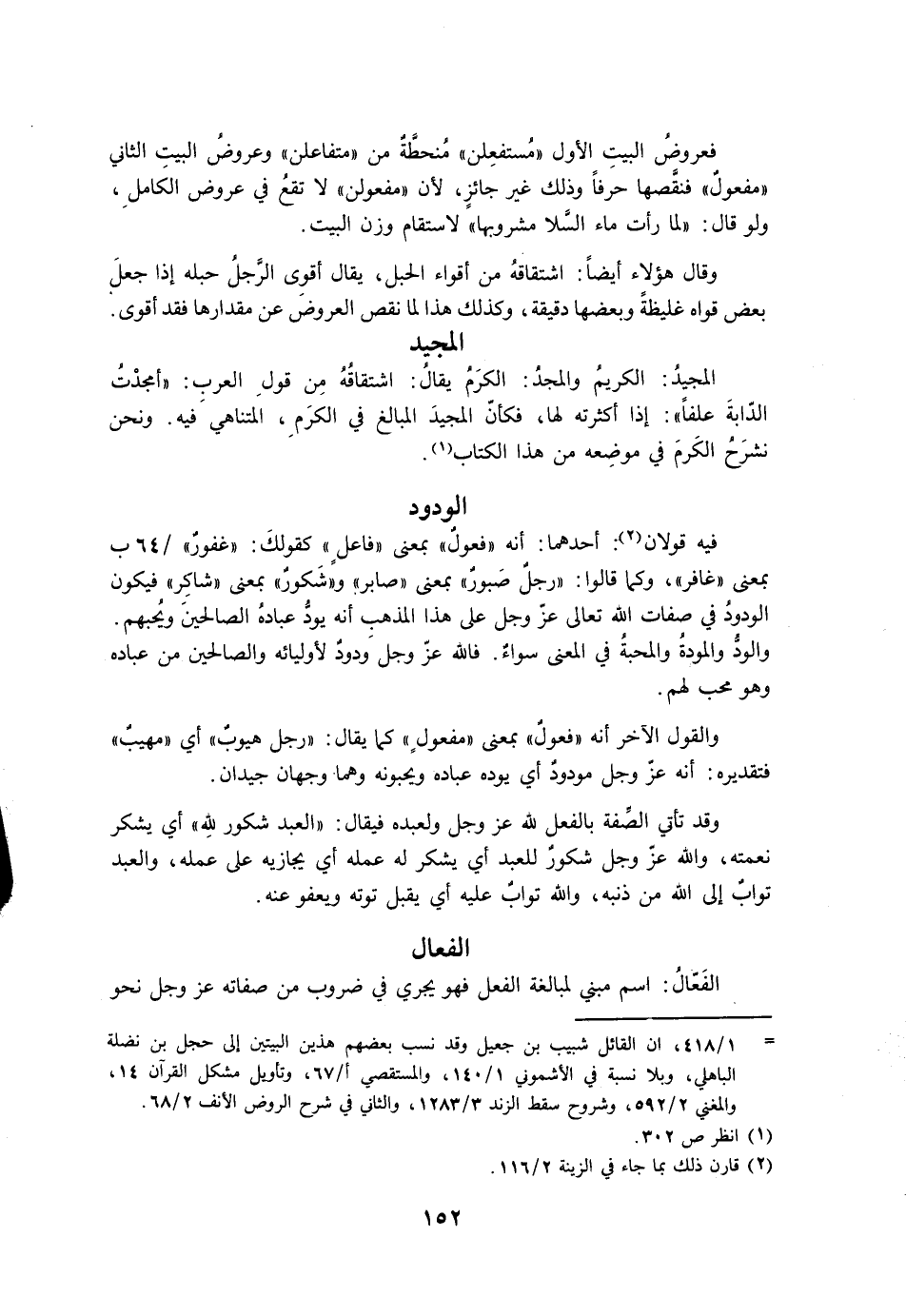والقول الآخر أنه «فعول» بمعنى «مفعول» كما يقال: «رجل هيوب» أي «مهيب» فتقديره: أنه عز وجل مودود أي يوده عباده ويحبونه وهما وجهان جيدان.