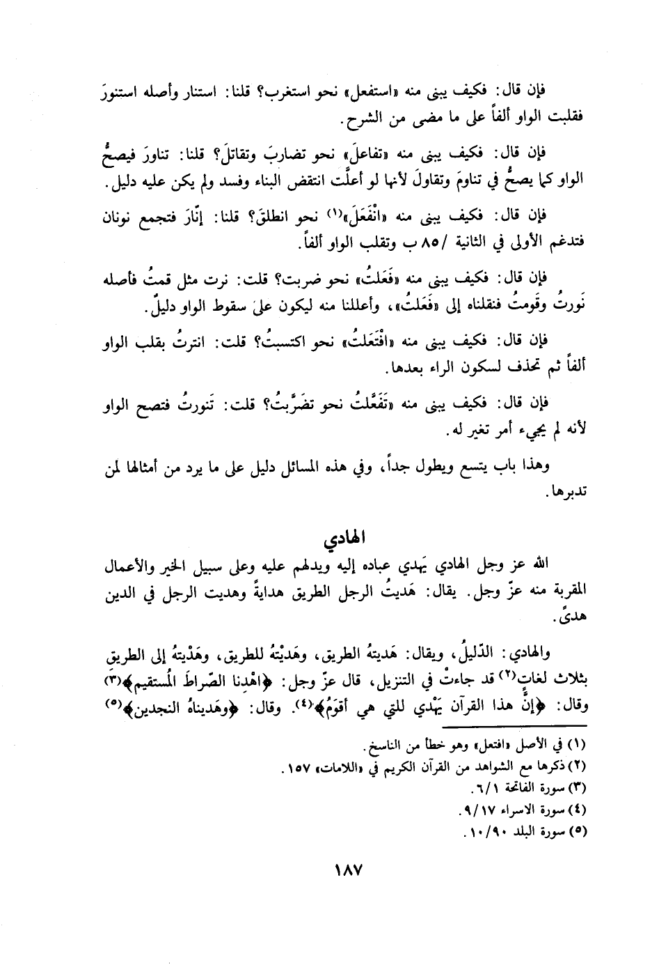فإن قال: فكيف يبني منه «افتعلت» نحو اكتسبت؟ قلت: انترت بقلب الواو ألفًا ثم تحذف لسكون الراء بعدها.