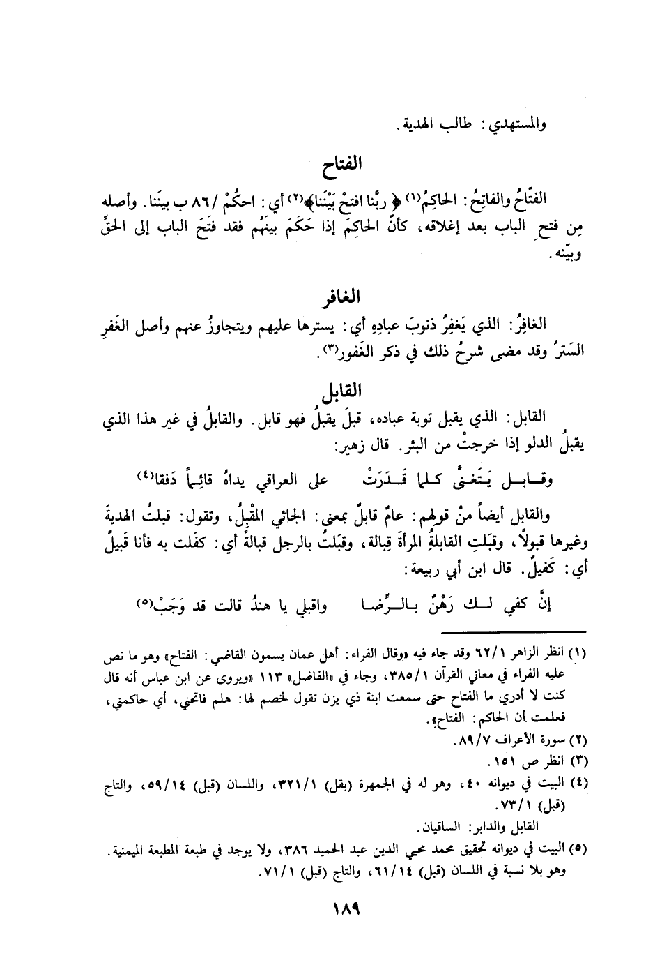الفتاح والفاتح: الحاكم {ربنا افتح بيننا} أي: احكم بيننا. وأصله من فتح الباب بعد إغلاقه، كأن الحاكم إذا حكم بينهم فقد فتح الباب إلى الحق وبينه.