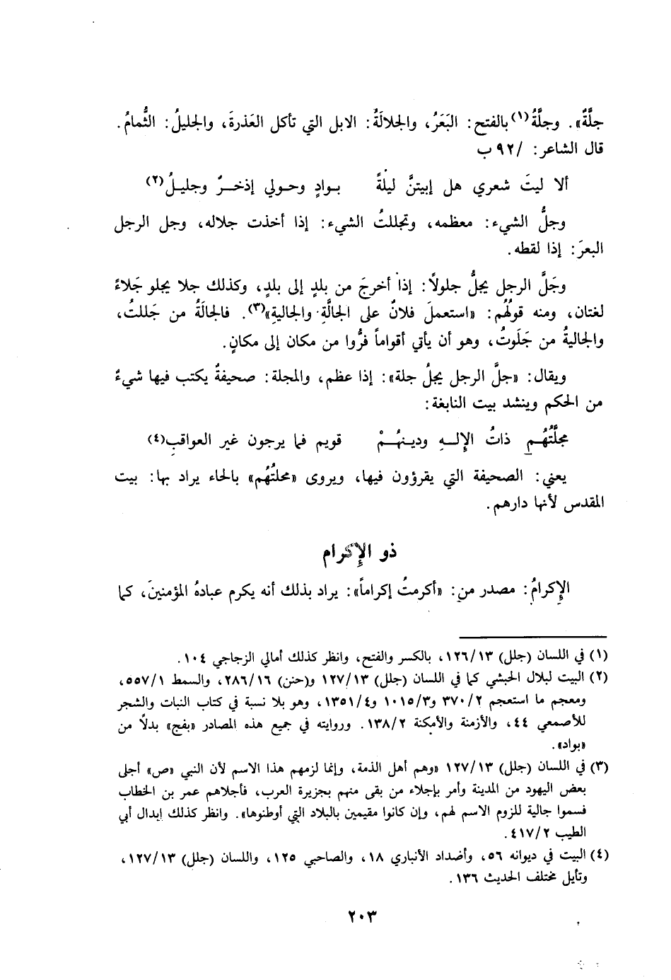جلة». وجلة بالفتح: البعر، والجلالة: الإبل التي تأكل العذرة، والجليل: الثمام قال الشاعر: