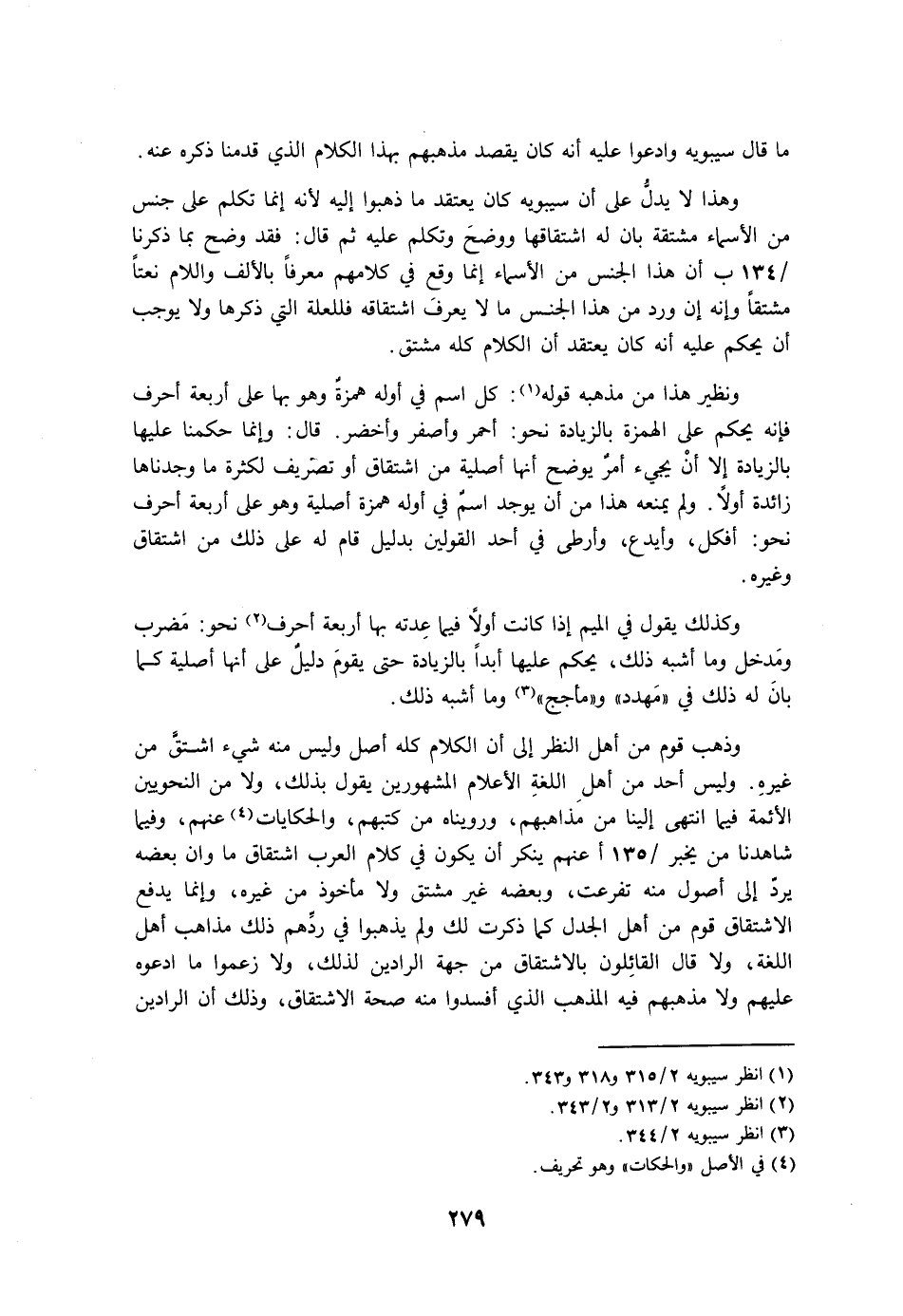 وذهب قوم من أهل النظر إلى أن الكلام كله أصل وليس منه شيء اشتق من غيره. وليس أحد من أهل اللغة الأعلام المشهورين يقول بذلك، ولا من النحويين الأئمة فيما انتهى إلينا من مذاهبهم، ورويناه من كتبهم، والحكايات عنهم، وفيما شاهدنا من يخبر عنهم ينكر أن يكون في كلام العرب اشتقاق ما وإن بعضه يرد إلى أصول منه تفرعت، وبعضه غير مشتق ولا مأخوذ من غيره، وإنما يدفع الاشتقاق قوم من أهل الجدل كما ذكرت لك ولم يذهبوا في ردهم ذلك مذاهب أهل اللغة، ولا قال القائلون بالاشتقاق من جهة الرادين لذلك، ولا زعموا ما ادعوه عليهم ولا مذهبهم فيه المذهب الذي أفسدوا منه صحة الاشتقاق، وذلك أن الرادين