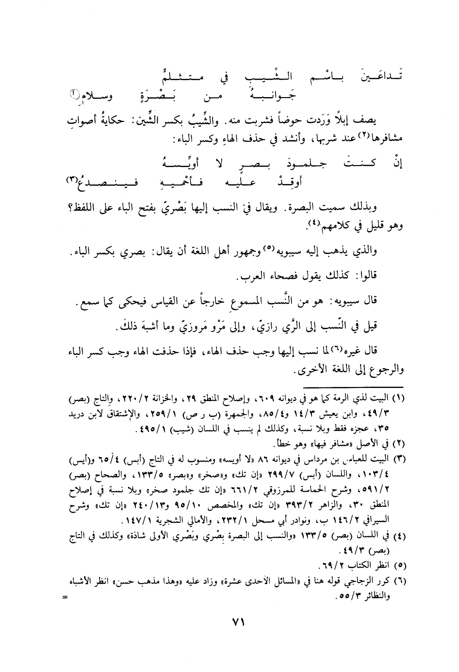 تداعين باسم الشيب في متثلم ... جوابنه من بصرة وسلام