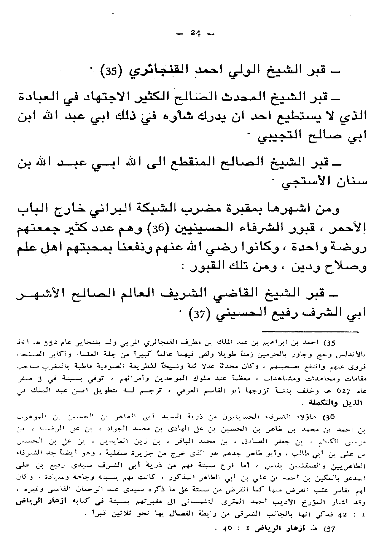 ومن أشهرها بمقبرة مضرب الشبكة البراني خارج الباب الأحمر، قبور الشرفاء الحسينيين وهم عدد كثير جمعتهم روضة واحدة، وكانوا رضي الله عنهم ونفعنا بمحبتهم أهل علم وصلاح ودين، ومن تلك القبور: