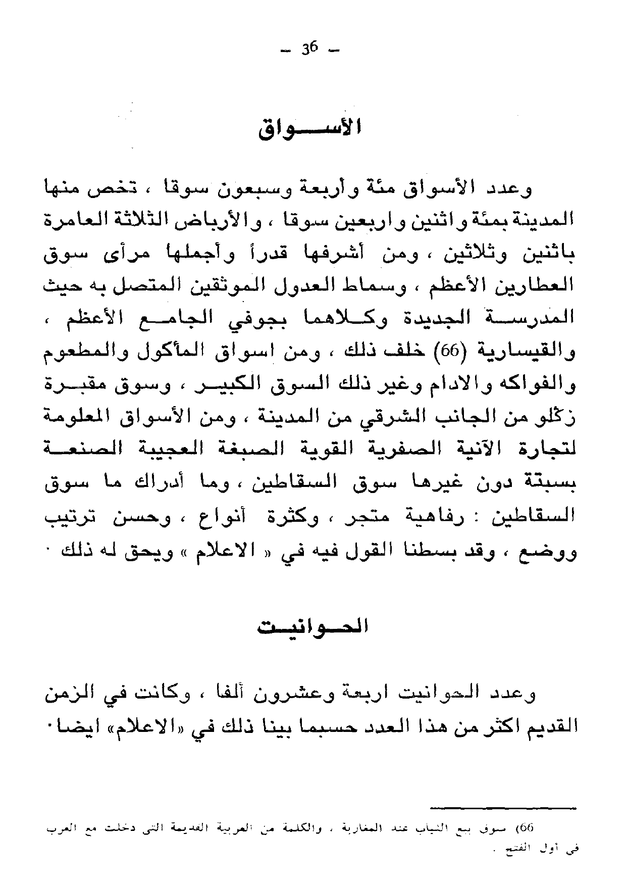وعدد الحوانيت أربعة وعشرون ألفاً، وكانت في الزمن القديم أكثر من هذا العدد حسبما بينا ذلك في (الأعلام) أيضاً.