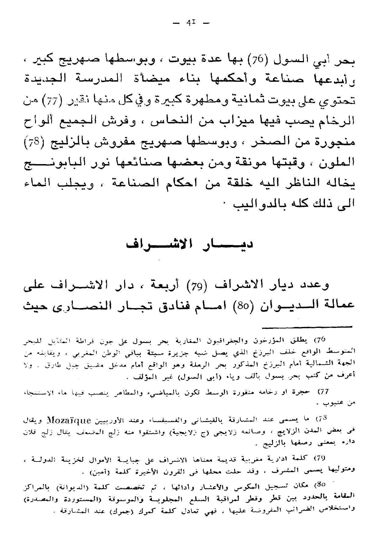 وعدد ديار الإشراف أربعة، دار الإشراف على عمالة الديوان أمام فنادق تجار النصارى حيث