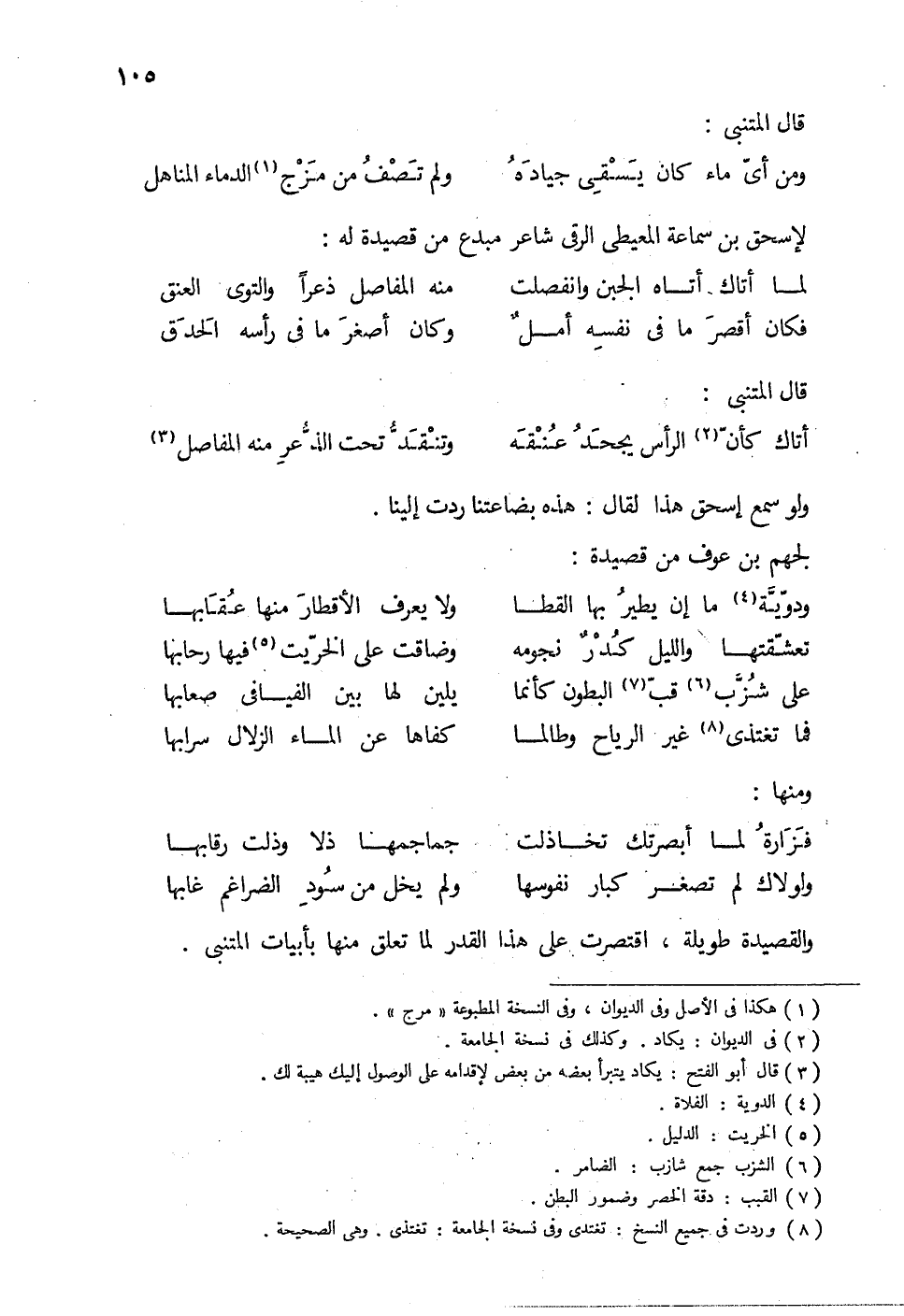 والقصيدة طويلة، اقتصرت على هذا القدر لما تعلق منها بأبيات المتنبي.