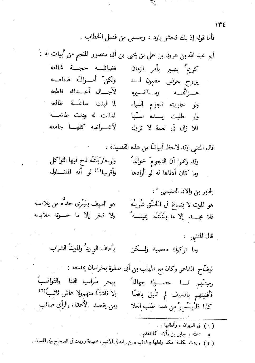 قال المتنبي وقد لاحظ أبياتاً من هذه القصيدة:
