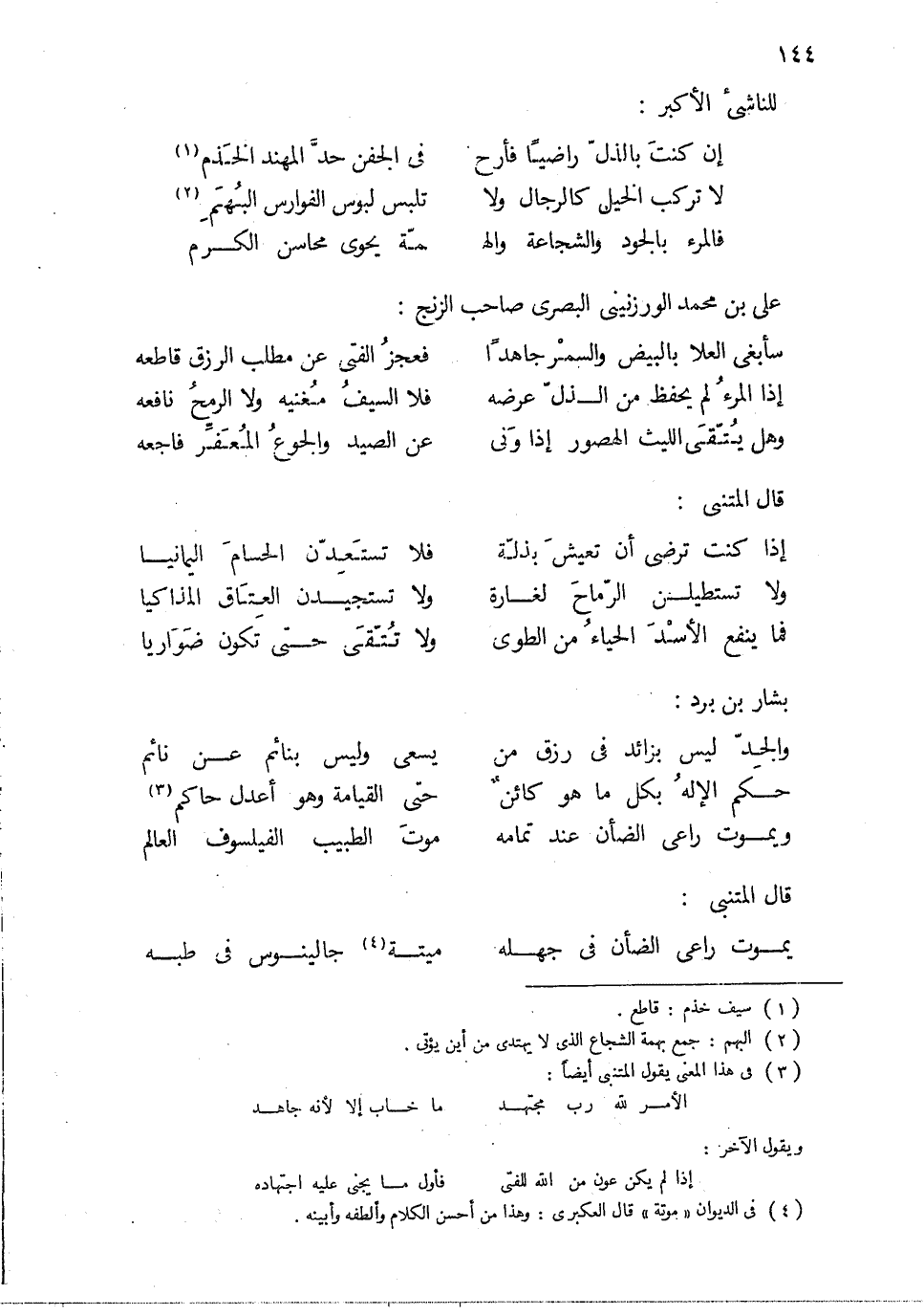 يموت راعي الضأن في جهله ... ميتة جالينوس في طبه