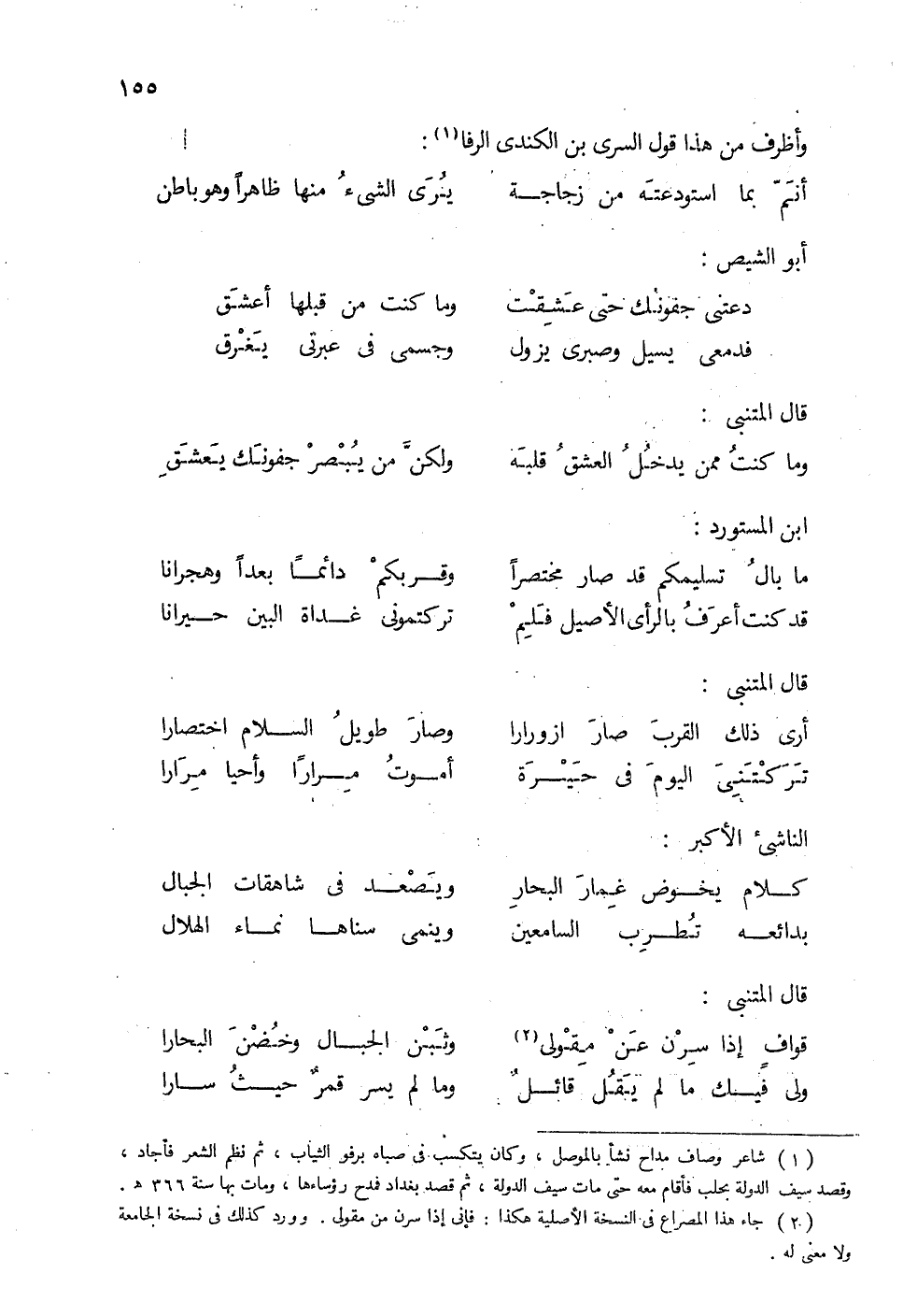 وأظرف من هذا قول السري بن الكندي الرفا: