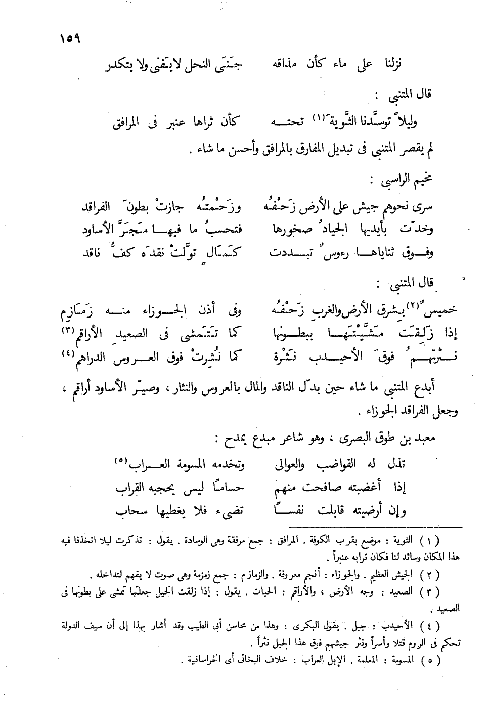 لم يقصر المتنبي في تبديل المفارق بالمرافق وأحسن ما شاء.