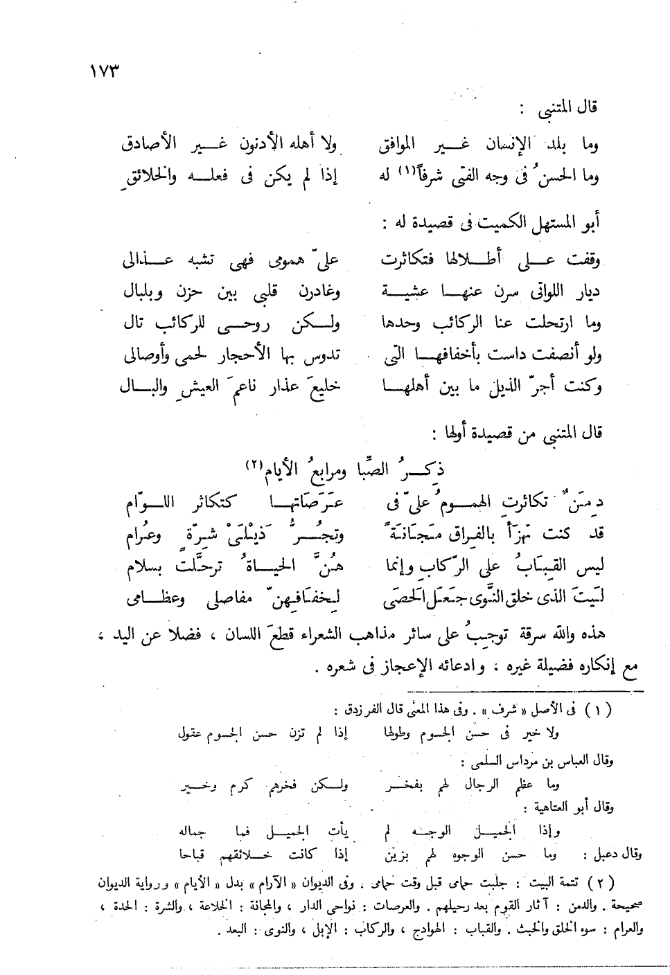 وما الحسنُ في وجه الفتى شرفاً له ... إذا لم يكن في فعله والخلائقِ