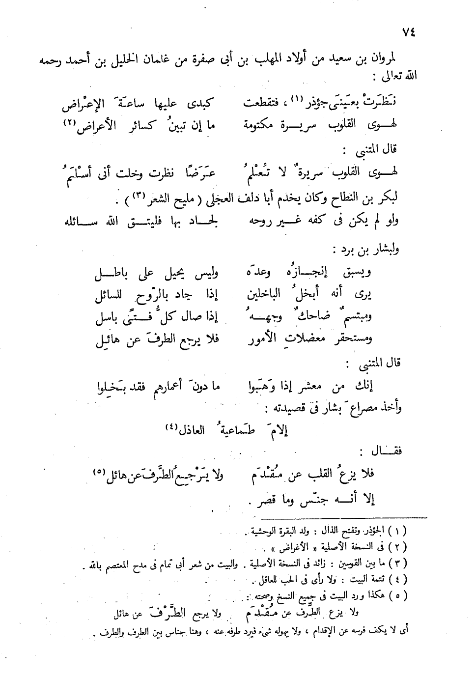 لمروان بن سعيد من أولاد المهلب بن أبي صفرة من غلمان الخليل بن أحمد رحمه الله تعالى: