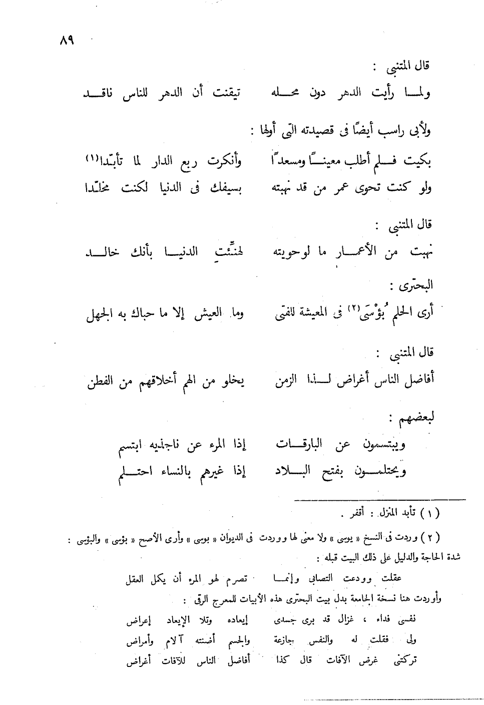 أفاضل الناس أغراض لذا الزمن ... يخلو من الهم أخلاقهم من الفطن