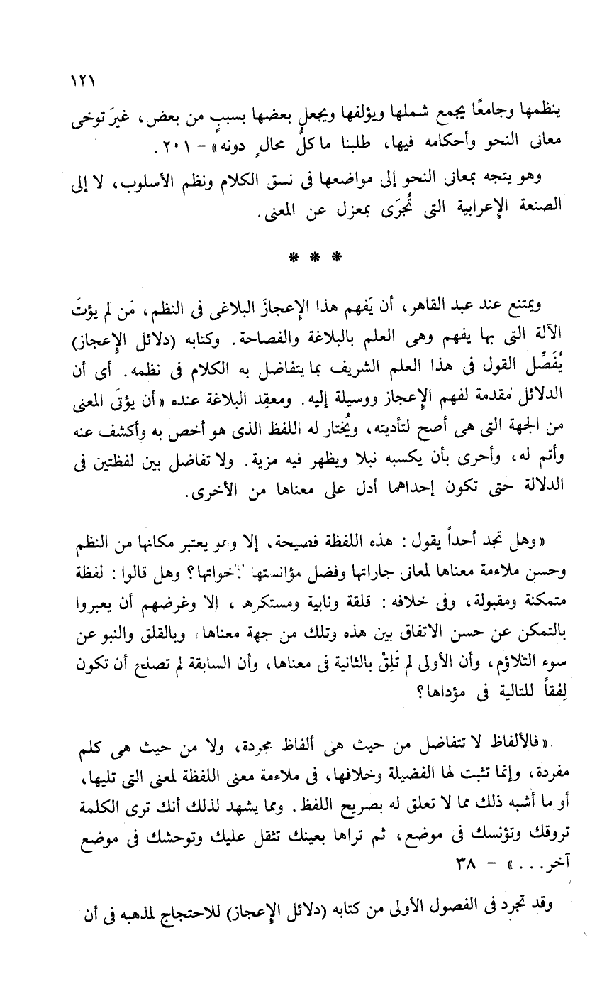 ينظمها وجامعاً يجمع شملها ويؤلفها ويجعل بعضها بسبب من بعض، غيرَ توخي معاني النحو وأحكامه فيها، طلبنا ما كلُّ محالٍ دونه" - 201.