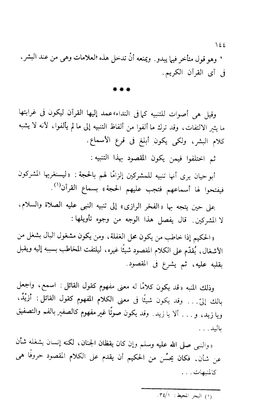 "والنبي - صلى الله عليه وسلم - وإن كان يقظان الجنان، لكنه إنسان يشغله شأن عن شأن، فكان يحسُن من الحكيم أن يقدم على الكلام المقصود حروفاً هي كالمنبهات. . .