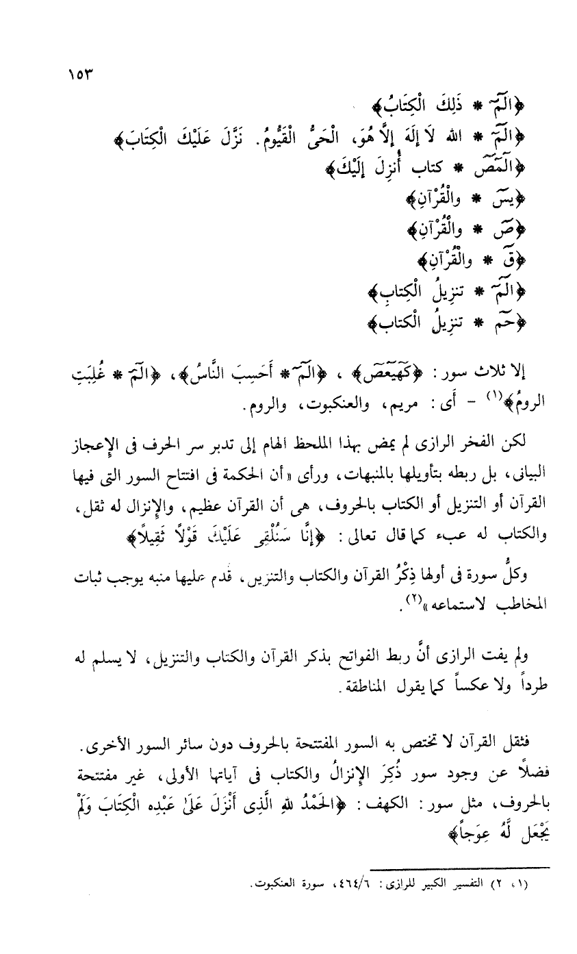 ولم يفت الرازي أنَّ ربك الفواتح بذكر تالقرآن والكتاب والتنزيل، لا يسلم له طرداً ولا عكساً كما يقول المناطقة.