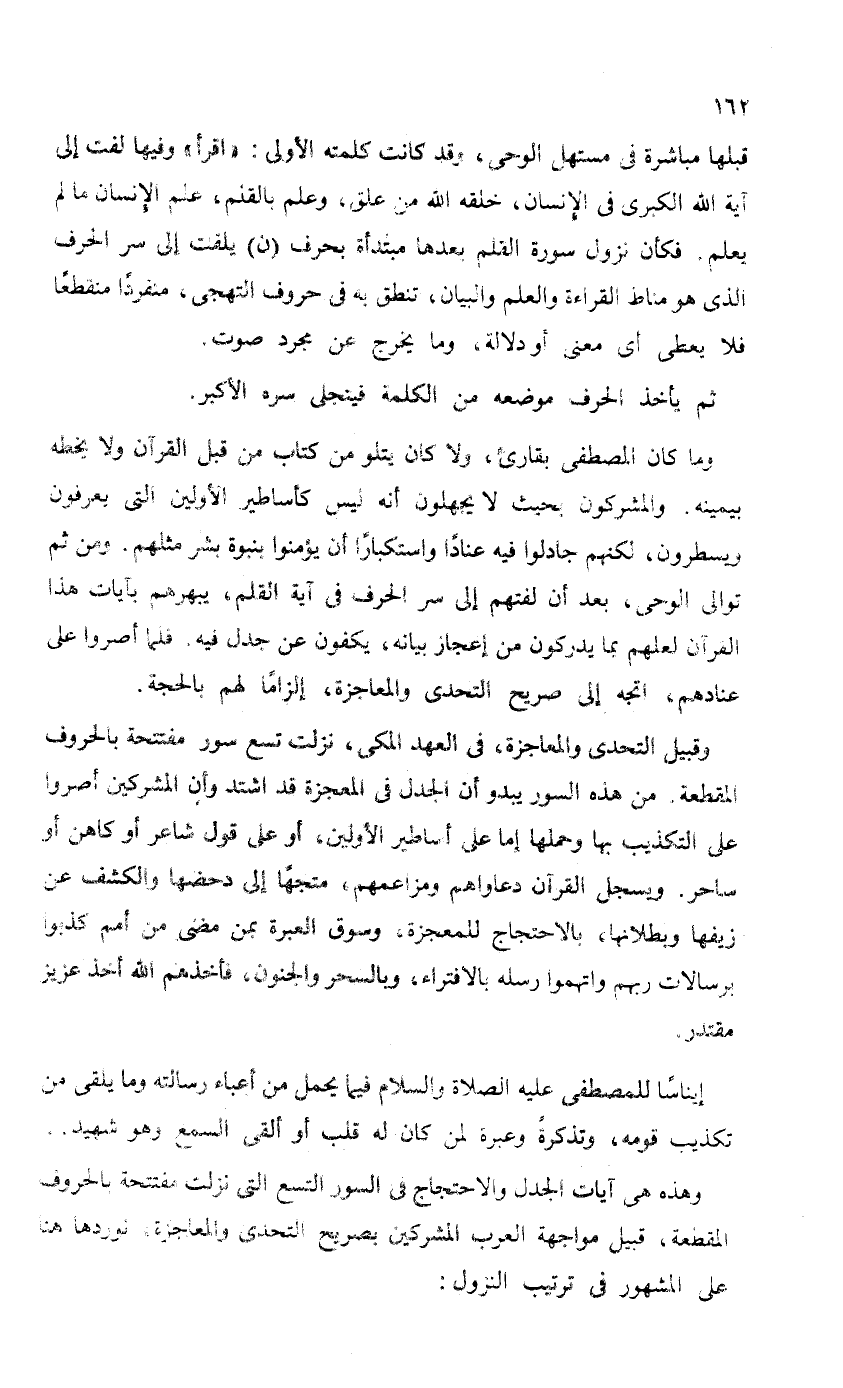 وما كان المصطفى بقارئ، ولا كان يتلو من كتاب من قبل القرآن ولا يخطه بيمينه. والمشركون بحيث لا يجهلون أنه ليس كأساطير الأولين التي يعرفون ويسطرون، لكنهم جادلوا فيه عناداً واستكباراً أن يؤمنوا بنبوة بشر مثلهم. ومن ثم توالى الوحي، بعد أن لفتهم إلى سر الحرف في آية القلم، يبهرهم بآيات هذا القرآن لعلهم بما يجركون من إعجاز بيانه، يكفون عن جدل فيه. فلما أصروا على عنادهم، اتجه إلى صريح التحدي والمعاجزة، إلزاماً لهم بالحجة.