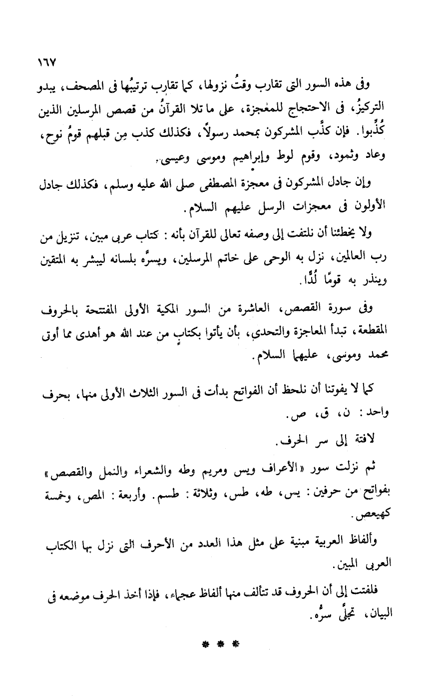 ثم نزلت سور "الأعراف ويس ومريم وطه والشعراء والنمل والقصص" بفواتح من حرفين: يس، طه، طس، وثلاثة: طسك. وأربعة: المص، وخمسة كهيعص.