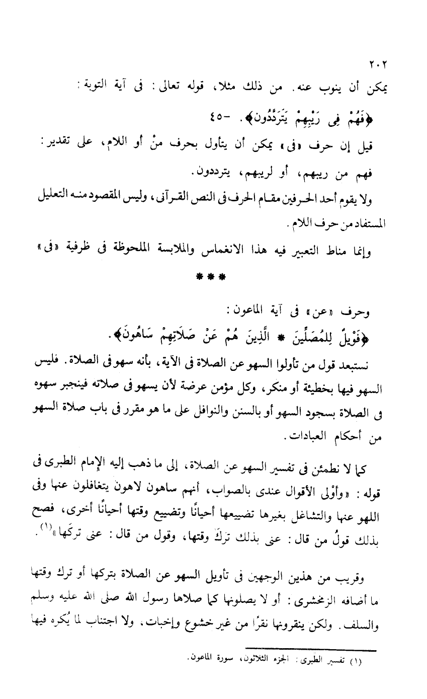 كما لا نطمئن في تفسير السهو عن الصلاة، إلى ما ذهب إليه الإمام الطبري في قوله: "وأوْلى الأقوال عندي بالصواب، أنهم ساهون لاهون يتغافلون عنها وفي اللهو عنها والتشاغل بغيرها تضييعها أحياناً وتضييع وقتها أحياناً أخرى، فصح بذلك قولُ من قال: عنى بذلك ترك وقتها، وقول من قال: عنى تركَها".