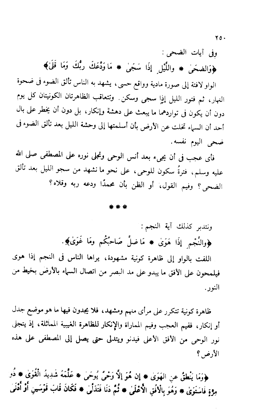 ظاهرة كونية تتكرر على مرأى منهم ومشهد، فلا يجدون فيها ما هو موضع جدل أو إنكار، ففيم العجب وفيم المماراة والإنكار للظاهرة الغيبية المماثلة، إذ يتجلى نور الوحي من الأفق الأعلى فيدنو ويتدلى حتى يصل إلى المصطفى على هذه الأرض؟