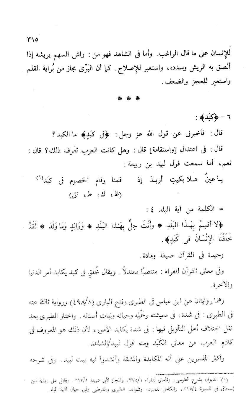 وأكثر المفسرين على أنه المكابدة والمشقة وأنشدوا فيه بيت لبيد. وفي شرحه